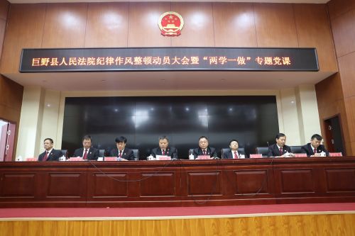 上午9点30分,在我院二楼大审判庭召开纪律作风整顿动员大会暨“两学一做”专题党课,我院全体干警参加会议,院党组书记、院长程相锋出席会议并讲话,会议由我院党组副书记、副院长解国锋主持。